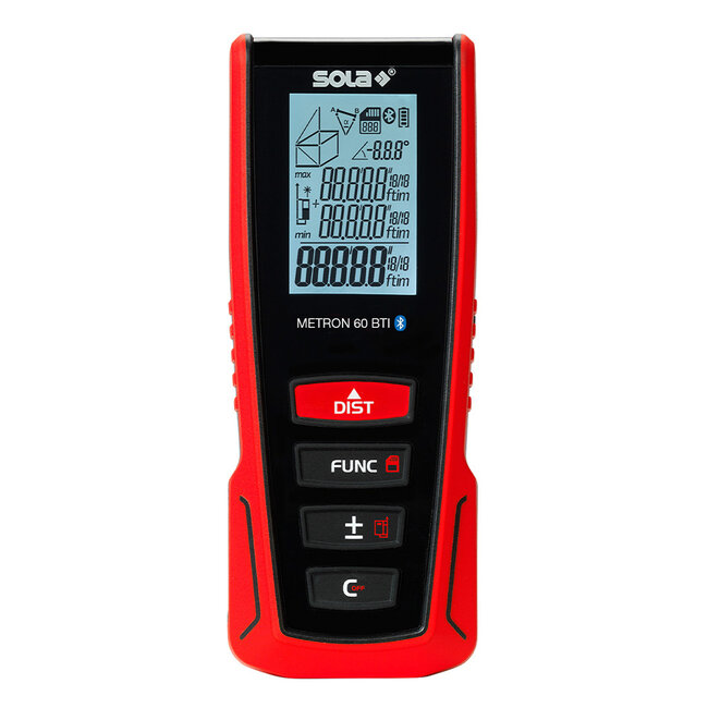 De SOLA METRON 60 BTI is een professionele laserafstandsmeter tot 60 meter (±1,5 mm) met Bluetooth en hellingssensor. Ideaal voor stuc- en afbouwwerk: snel wanden en plafonds inmeten, m² berekenen en meetwaarden delen via de app. Lees meer.